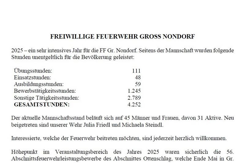 Jahresbericht der Feuerwehr Groß Nondorf.